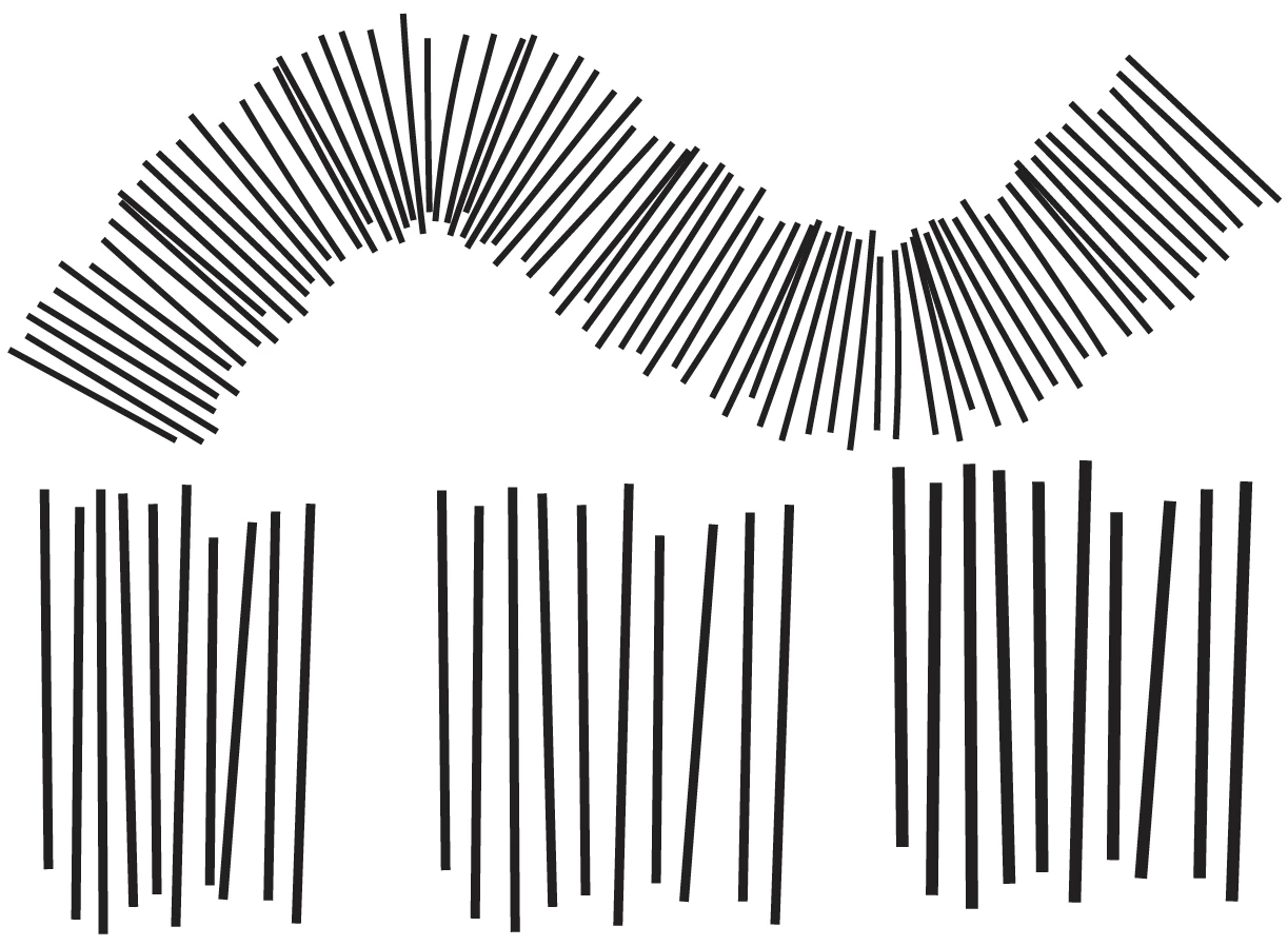 Aiming for a curving design I created a series of uneven vertical scratches. I experimented to find the right line thickness and width of the curves. Only when I combined a series of these overlapping shapes did I realise the similarity to Meandering.