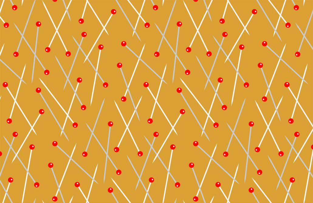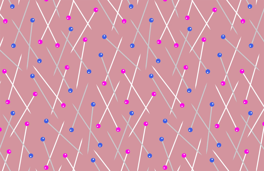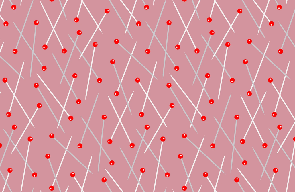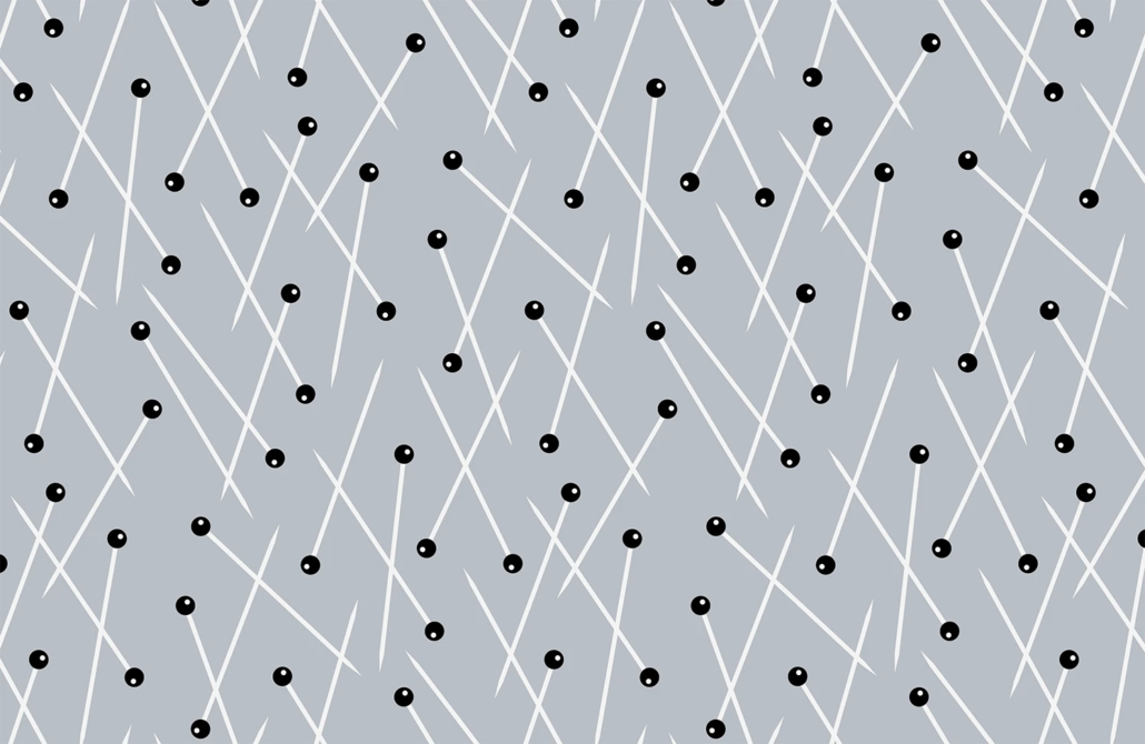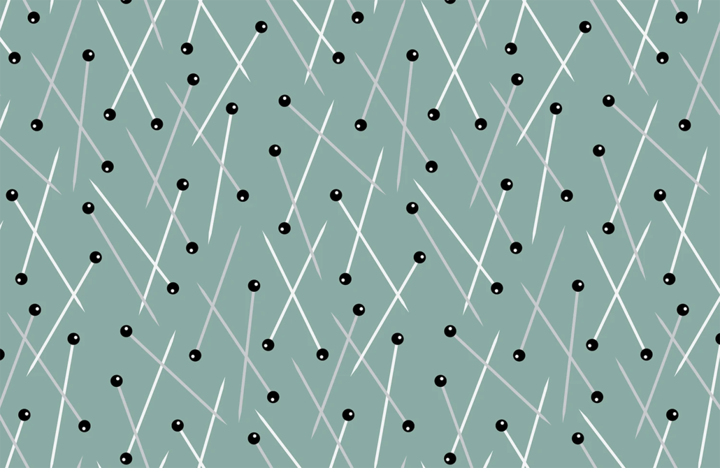It would be pretty impossible to create a pattern without seeing how the repeat works. This pattern uses 18x individual pins. Each one is formed of a brush I created in Illustrator. The pin heads and the metal stem and point can all be recoloured for each pattern.