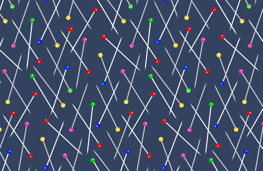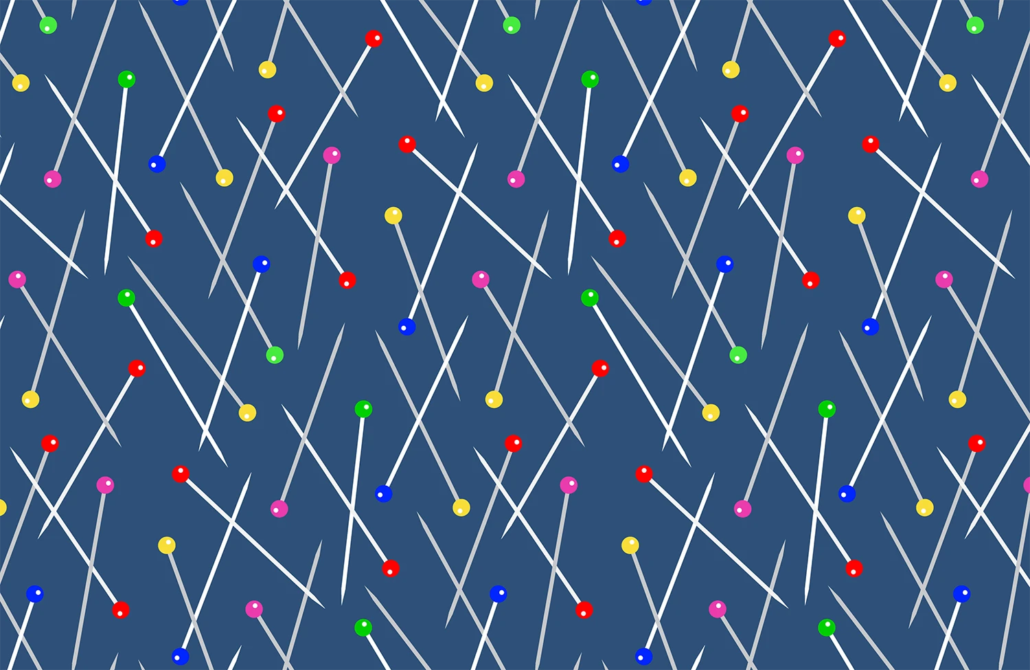 The real challenge is to get a combination of pins to look realistically random – one of the most difficult things to do with a pattern!